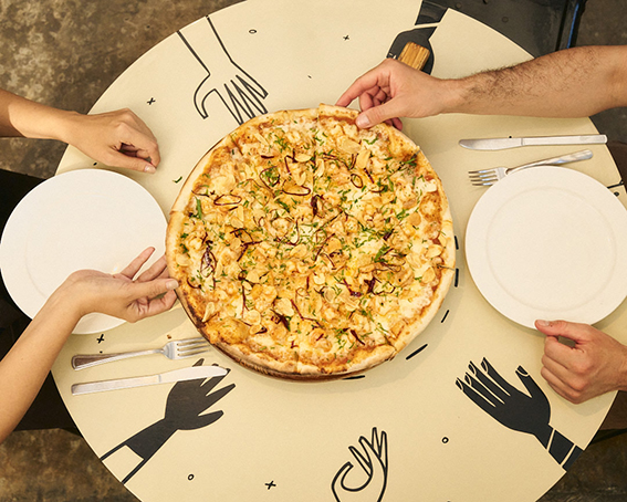 Esa experiencia “buena onda”, como le gusta hacer hincapié a Arturo, fue contagiosa. Tanto, que al poco tiempo abrieron otra sucursal en Sonata. De repente ésta ya no sólo era una marca hecha por y para jóvenes cholultecas, familias enteras, grupos de amigos, parejas de todas las edades se sentaban alrededor de una de sus pizzas. Y lo que comenzó como una pequeña marca local, cuyo nombre incluso surgió por casualidad, se convirtió en una de las más representativas de Puebla. Y no sólo por el sabor. Ahí estaban también su personal: jóvenes de actitud relajada que bien podría encontrarse uno en cualquier fiesta cholulteca o la imagen hecha por uno de nuestros artistas locales más representativos: El Dee.