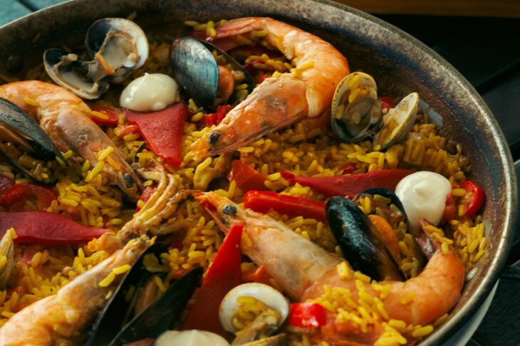 Donde hay arroz pueden haber muchos elementos más que quizás en ninguna otra circunstancia se juntarían. Prueba de ello: la paella. Los registros más antiguos de este platillo nos remontan a Valencia, España, y como seguro te imaginas se trata de un platillo que nace a partir de la improvisación con lo que había disponible en la alacena. Este es un platillo rural cocinado al aire libre por primera vez en el siglo XVIII, utilizando ingredientes locales como pollo, conejo, judías verdes y garrofón. La paella se popularizó en las ciudades y llegó a ser servida en ferias y eventos, antes de convertirse en un plato de lujo con ingredientes más sofisticados.