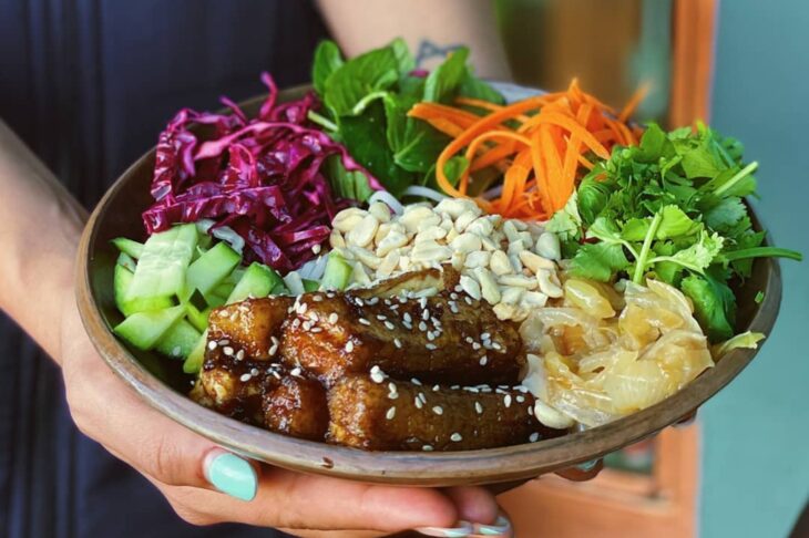 Si piensas que las verduras no son lo tuyo necesitas ir a Le Bóbún. Este lugar de Comida Franco Vietnamita es quizás el proyecto más fresco de este listado. Pidas lo que pidas en aquí te encontrarás con una explosión de sabores y productos que parecen recién arrancados de la tierra. En sus platillos ningún elemento es secundario y desde la proteína hasta las hierbas –que usualmente te harían pensar que solamente son decorativas– están cuidadosamente seleccionadas para mandar a tu paladar a un viaje culinario. Nosotrxs te recomendamos probar su BÓBÚN, un vasto plato con tallarines, mix de vegetales (pepino, zanahoria, col morada, cebolla caramelizada, cilantro y hierbabuena) salsa de pescado cacahuate.