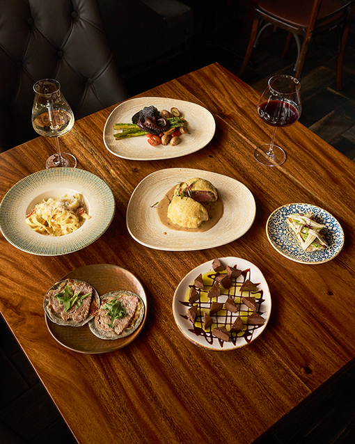 Ajenos a tendencias efímeras y modas pasajeras, Bardo es un restaurante a la usanza más clásica: un lugar al que se viene a comer bien, a beber bien, a estar bien. Su carta no sigue un solo tipo de cocina, es más bien una selección de distintos placeres de alrededor del mundo con un toque muy personal. Clásicos como el filete Wellington o la sopa de langostinos se encuentran con platillos hechos de manera coral entre el equipo del restaurante y clientes como la pasta Circe o el pescado Toñito Vázquez. Una experiencia que aunque hecha a la medida, tiene un atractivo universal.