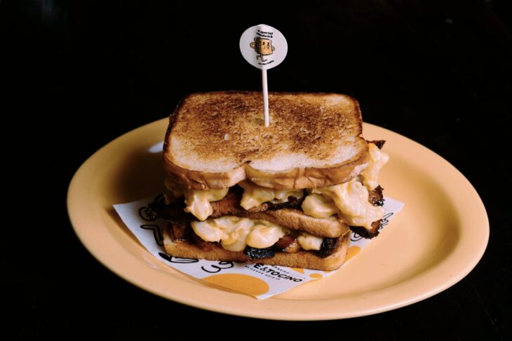 Todo, absolutamente todo y sin excepciones, sabe mejor entre un par de panes. Si queda alguna duda sobre esta aseveración, te invitamos a probar el Sándwich de Mac n’ Cheese que el chef Luigi Tlachi —experto en llevar el munchis a otros niveles— prepara en las cocinas de Café & Tocino: un sándwich de 2 niveles relleno de macarrones con salsa de queso cheddar, tocino curado y ahumado en casa y aderezo BBQ picosito. Una obra maestra.