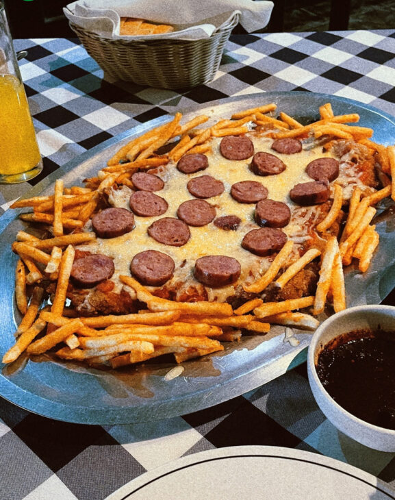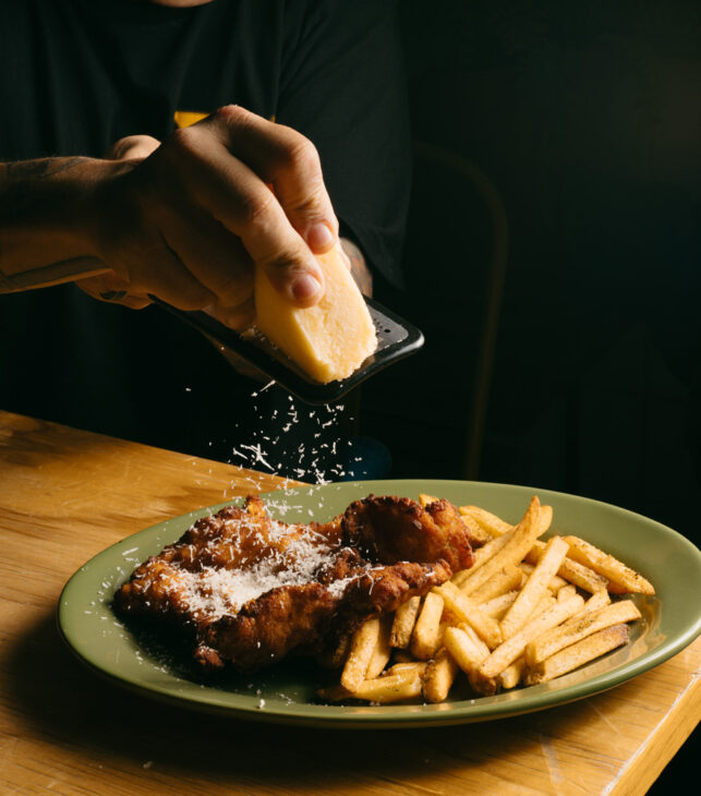 Si hay una meca a lo monchoso, un poema a lo sabroso que es comer hecho restaurante, ese es Café & Tocino. Seguro ubicas este recinto por sus desayunar, sus hot cakes o sus sándwiches, pero si le echas una revisada a su carta, podrás encontrarte consu Milanesa de Pollo, 220 g de pechuga de pollo empanizada acompañada de 120 g de papas fritas, todo con queso parmesano, limón amarillo, chimichurri y aderezo César o de ajo a elegir. Uno de esos platillos que sin problemas puedes compartir, que si decides echártela tu mismx, también se vale.