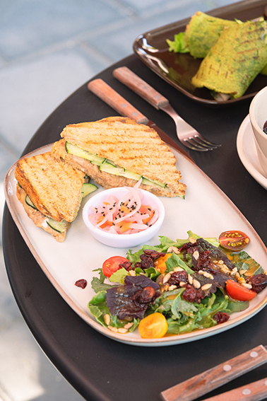 Y no todo tiene que ser necesariamente pan, su Berry Griego, un bowl con yogurt griego, frutos rojos, granola Super Foods hecha en casa y un toque de miel de dátil se mantiene en la línea de lo ligero y el sabor abundante.