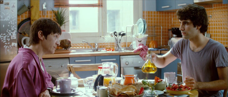 Incluso en una película en la que la comida tiene tan poco protagonismo como Los abrazos rotos (2009) el desayuno juega por igual un papel sanador. Tras una noche de confesiones, a la mañana siguiente Diego (Tamar Novas) usa jugo de naranja, tortilla española y café para limar asperezas con su madre (Blanca Portillo). “Hay que empezar bien el día”, concluye él, antes de recibir otra confesión.