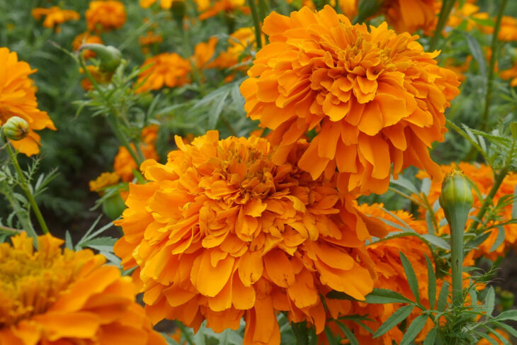 Aunque seguramente te has topado en diferentes viveros con otras que vienen en maceta, flores muy lindas, eso sí, casi perfectas, esponjosas y redondas; con colores más vibrantes que van desde el anaranjado, amarillo o incluso blanco. Pues bien, estas continúan siendo Tagetes erecta, pero estas han sido modificadas genéticamente. Esto ha ocurrido los últimos años en China, India o Estados Unidos, la llaman Marigold y es diferente porque aumenta el número y tamaño de sus flores, tienen colores más intensos y ciclos de cultivo más cortos, incluso un olor menos intenso gracias a la reducción de los aceites que le dan el olor característico.