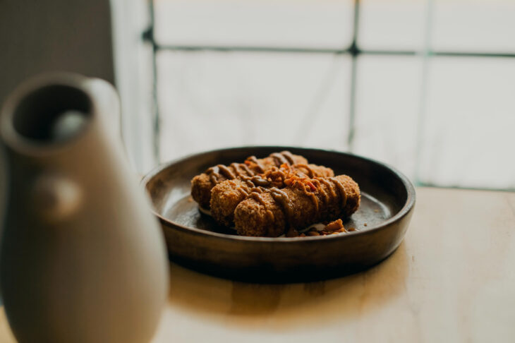 Y vaya que la comida es protagonista, tanto que hasta los platillos tienen historia y nombre propio. Un vistazo a su carta es suficiente para que sepas de lo que hablamos. En su carta de desayunos y comidas te encontrarás con manjares como Las Don Filo, otro de los apodos de su abuelo, un Mac and Cheese empanizado con aderezo de ajo, cátsup y tocino. Los Sin miedo al éxito, unos chilaquiles con salsa de chile quemado y suadero sabrosito que nacieron gracias al taquero de confianza de Franco, quien siempre lo animaba a echarse un taco más diciéndole: sin miedo al éxito joven.
