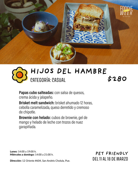 O si lo tuyo no es la carne, dale una mordida a su Grilled Cheese, con queso, quesillo de Chiapas y queso cheddar; además ya puedes ponerle 100 gramos de Pulled Pork o Brisket; y de postre, el Pan Francés, un brioche casero con crema de limón con cardamomo y crema de cacahuate. Pura joya para chuparte los dedos.