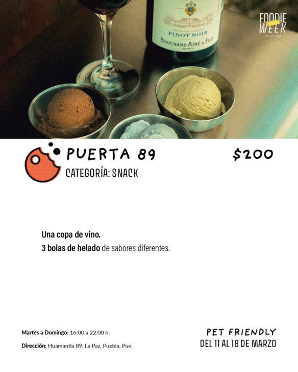 Una puerta roja en medio de la Calle Huamantla, justo en la Paz. Dentro, hay un par icónico, perfecto para disfrutar en alguna tarde soleada o incluso un noche cálida: Puerta 89.